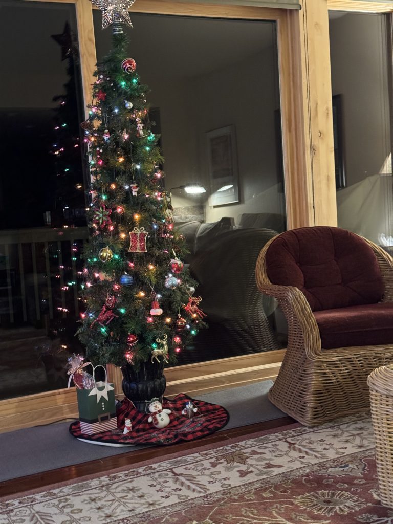 Our somewhat anorexic Christmas tree, but it makes it feel like home.