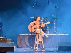 Go round to the Eccles Centre to watch Angela perform in a talent show. She was very good, sat on a stool, sang and played her guitar.