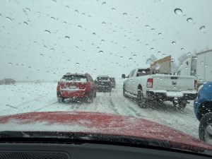 At last it’s snowing. Proper snow. Wendy’s at the Christian Centre. Mike and I are at a loose end so despite the winter storm we set off down to the archery range in Salt Lake. Pick up Marianne on the way. Well I’ve been bemoaning that I wanted to see some proper snow before we left. What better than driving on I80 over Parley’s Summit. Fortunately Mikes car has 4 wheel drive and snow tires. Unlike the dickheads causing chaos on I80, two wheel drives with no snow tires, spinning out everywhere. It’s like a war zone. Certainly made me appreciate the value and importance of 4 wheel drive and snow tires.